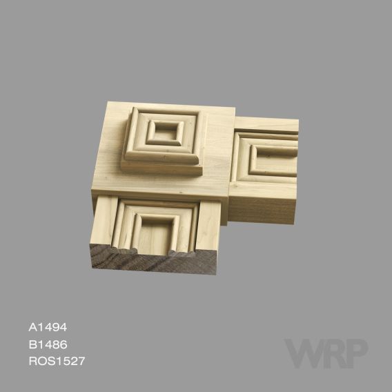 Rosette decorative corner blocks. Matching architraves A1494 and A1557. Matching bead B1486.