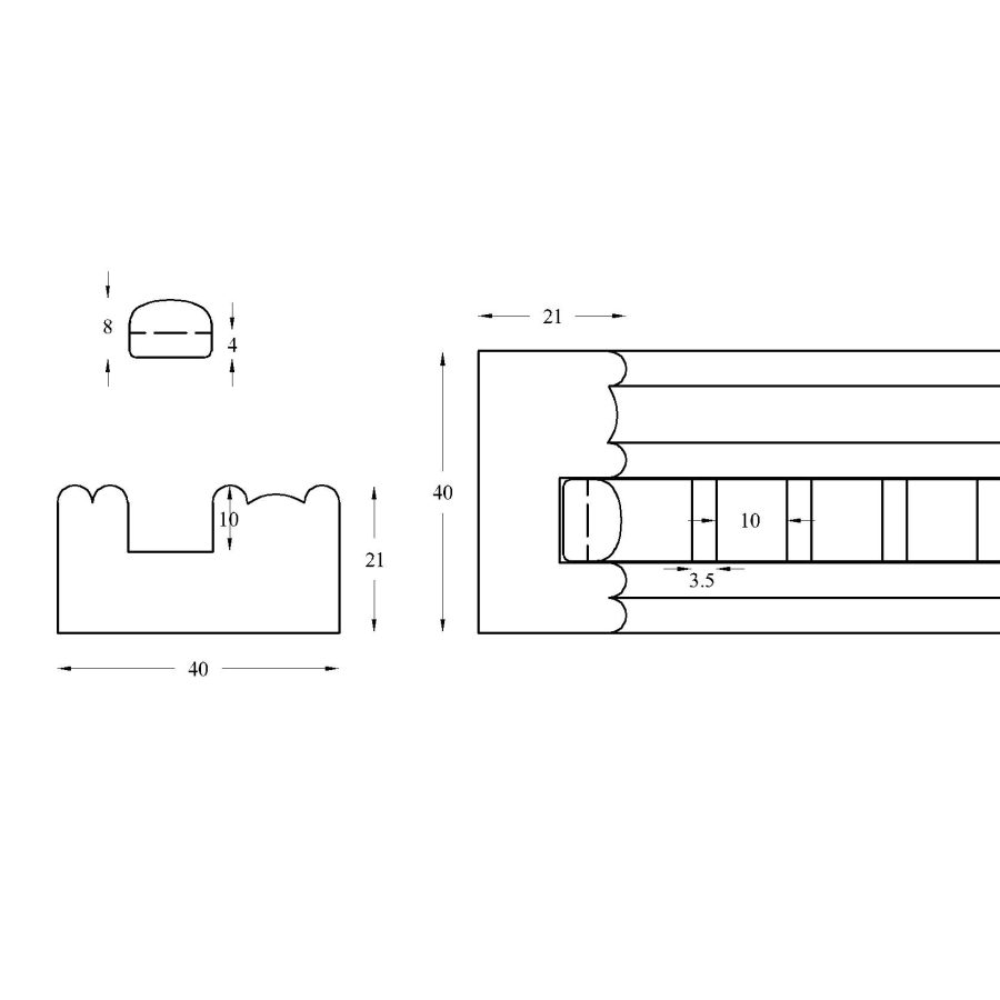Dentil cornice in 2 parts. Expertly machined in house to a smooth finish and left clean for polishing or painting.