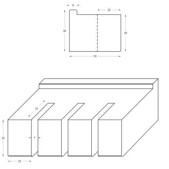 Dentil moulding, expertly machined in house to a smooth finish and left clean for polishing or painting.