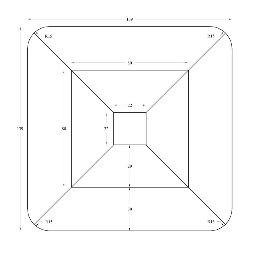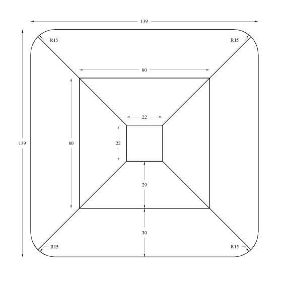 Newel post cap, quality finish with radius corners and edges radius. Location dowels included.