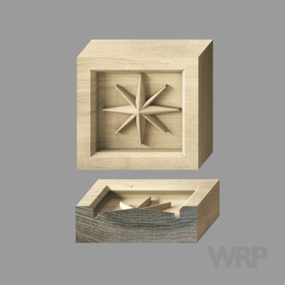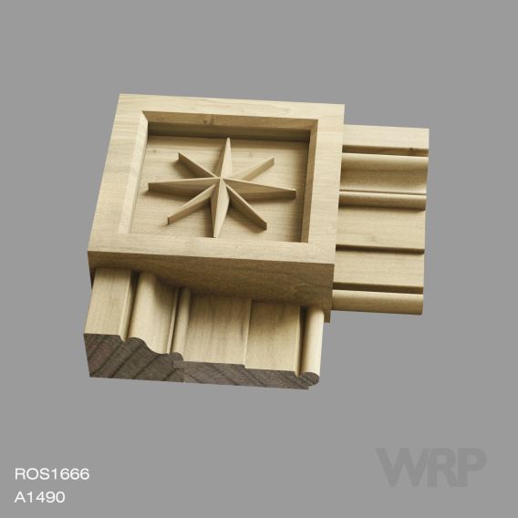 Discover our exclusive, star-shaped rosette, expertly crafted from solid timber. This unique WRP design is perfect for enhancing architraves and bespoke furniture. Each piece is meticulously carved in-house using our state-of-the-art machinery, ensuring a flawless finish that stands out in any setting. Matching architrave A1490.