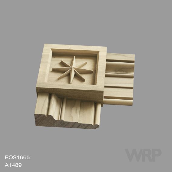 Discover our exclusive, star-shaped rosette, expertly crafted from solid timber. This unique WRP design is perfect for enhancing architraves and bespoke furniture. Each piece is meticulously carved in-house using our state-of-the-art machinery, ensuring a flawless finish that stands out in any setting. Matching architrave A1490.