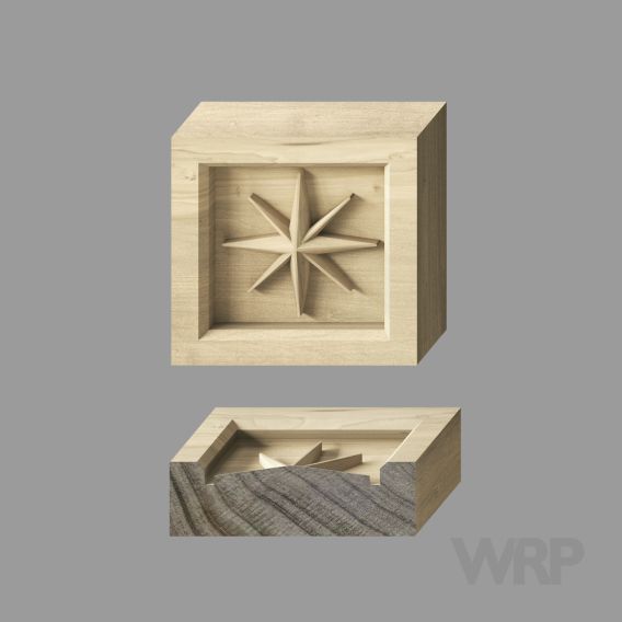 Discover our exclusive, star-shaped rosette, expertly crafted from solid timber. This unique WRP design is perfect for enhancing architraves and bespoke furniture. Each piece is meticulously carved in-house using our state-of-the-art machinery, ensuring a flawless finish that stands out in any setting. Matching architraves A1427, A1489. Available in 3 sizes.