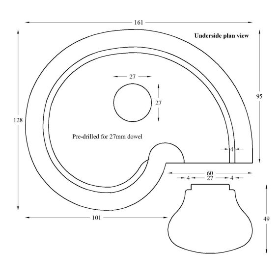Oval Newel cap. To be mitre jointed into handrail, Cutting details are shown on diagram. Click on see all combinations below to see all related parts.